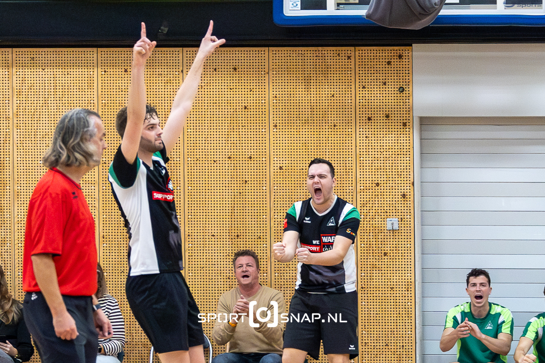 Sterre die wederom een hoog percentage schoot opende de score na rust van afstand en het verhaal van de 2e helft was dat Achilles meestal 1 tot 2 goals in de plus stond maar dat SDO, dat er steeds beter in kwam bij de stand van 13-13 voor het eerst langszij kwam. Nogmaals Sterre van afstand en Noa vanaf de stip betekende 13-15, maar SDO gaf alles en ze kregen, ook dankzij een buzzerbeater, de geest. Wayne gaf de onzen weer wat lucht en Sterre plopte de 15-17 erin. SDO was echter uit op een resultaat. De hal ontplofte bijna toen ze brutaal de voorsprong pakten (18 – 17), maar wie anders dan Sterre repareerde snel met een omdraaibal. Wayne stond onder de paal z’n tegenstander er uit sprong scoorde zijn kans onder de paal. Weer kwam SDO langszij. Noa hield Achilles aan de positieve kant van de score met een afstandsschot (19 – 20) en de slotfase brak aan. Elke rebound was in de deze fase cruciaal. En dan moet je bij Pepijn zijn die in het veld was gekomen. Pepijn liet z’n spierballen zien door een hard maar fair reboundduel te winnen en z’n eigen vliegende rebound zelf fraai af te ronden. Weer stond Achilles 2 goals in de plus en de aflopende klok werd langzaam onze vriend. Menno van afstand en Laura met een krachtige doorbraak lieten de eindstand van 20-23 optekenen en de punten gingen gewoon mee naar Den Haag.