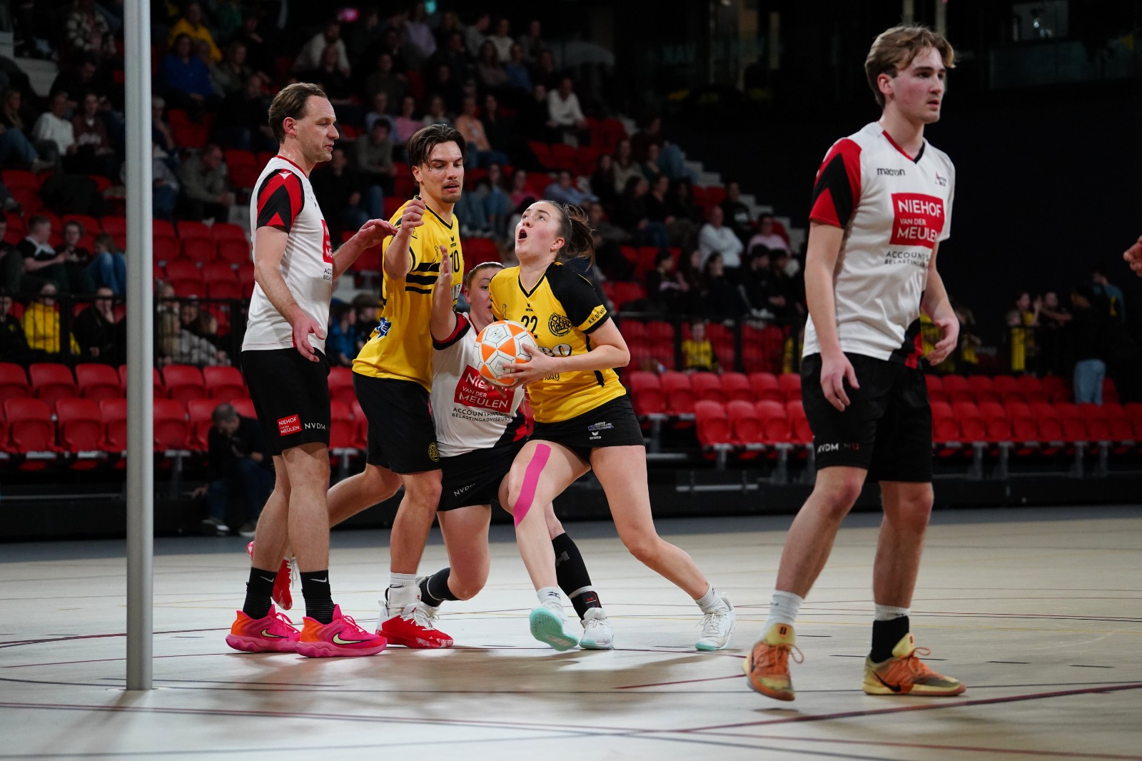 Die Haghe kreeg goede kansen, maar had er een hoop nodig en kwam maar niet los. Celeste zette na twee crossballen de 15–14 op het bord. Boyd zorgde daarna vanaf de stip voor het gaatje: 16–14. Tom Snaphaan bracht het verschil weer op vier met zijn derde en vierde treffer: 18–14. Toch hield de gevaarlijke Senna Roggeveen de bezoekers in de race: 18–16.